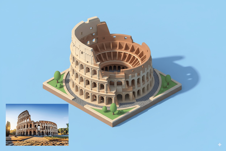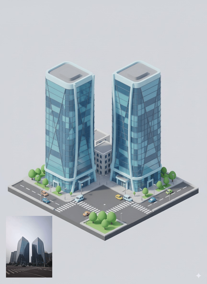 Our Isometric Building Generator is an advanced nano banana AI-powered tool that converts building photographs into cute, rounded isometric 3D tile renderings using nano banana model technology.
